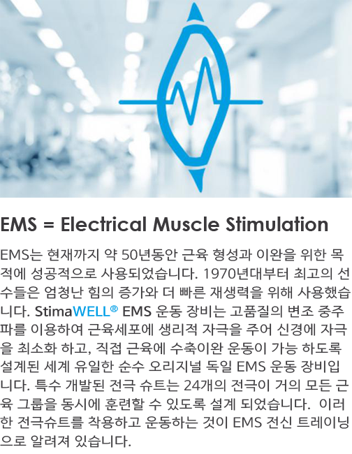 EMS 트레이닝을 어떻게 해야 하는지 궁금하세요? StimaWELL® EMS 운동 장비와 함께 할 수 있는 40개의 다양한 운동 영상을 제공합니다. 개인의 목표를 달성하는데 도움이 충분히 되실 것입니다. StimaWELL® EMS 에 탑재되어 있는 20분 운동프그램의 시퀀스와 자극은 스포츠 과학 연구 결과를 토대로 설계되었습니다. 운동프로그램을 제공되는 영상과 함께 시작해 보세요. EMS트레이닝 전문샵 또는 TV, 태블릿 및 스마트폰용 영상을 이용해서 운동을 하세요.
